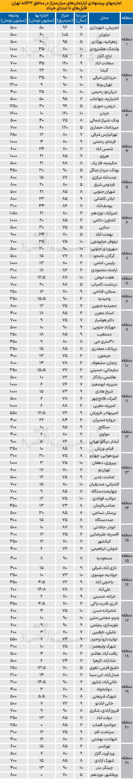 – میانگین «اجارهبهای پیشنهادی» موجرها در تهران، ابتدای خرداد به ۱۷.۱میلیون اجاره ماهانه و ۵۹۰ میلیون پولپیش رسید؛ ۲.۵درصد افزایش نسبت به ابتدای سال
