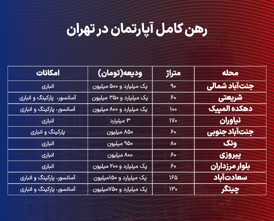 رهن کامل در تهران چقدر آب میخورد؟