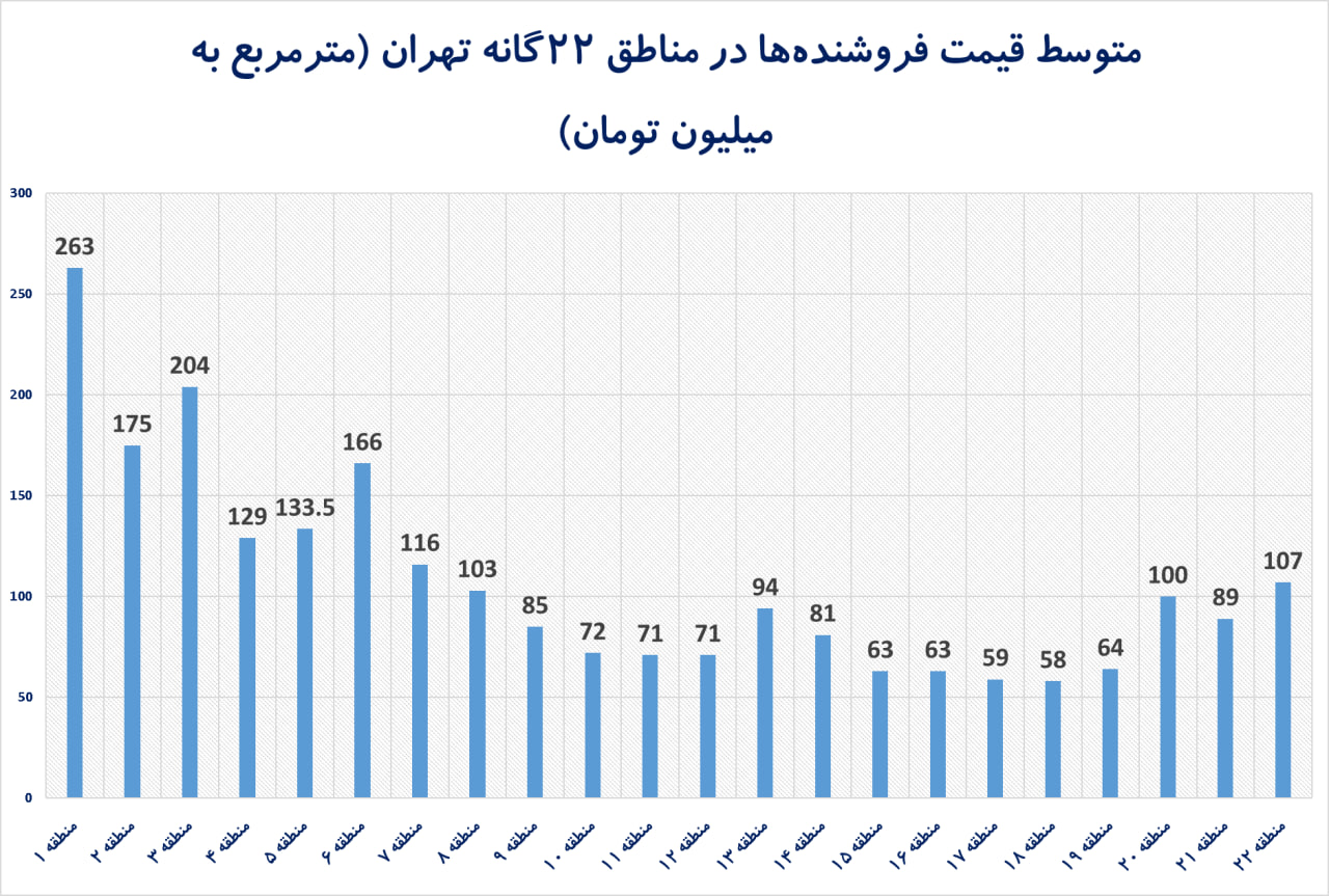 متوسط قیمت فروشنده‌ها در مناطق ۲۲گانه تهران