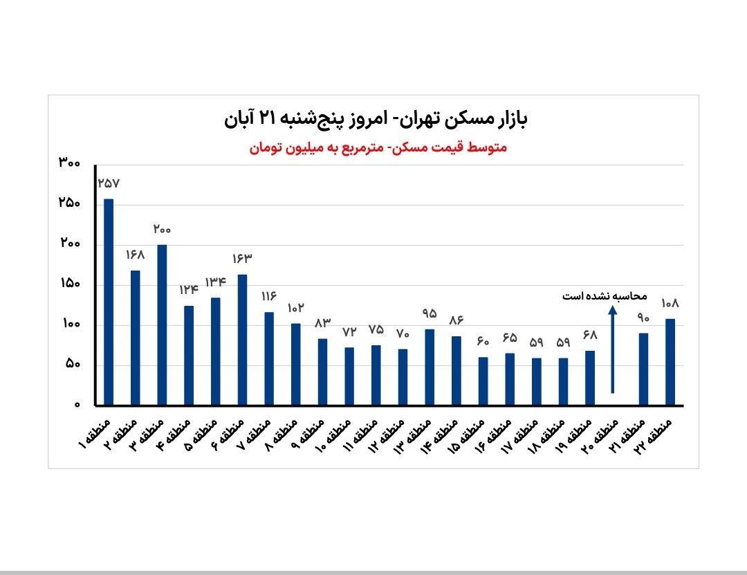 به این ترتیب، رقم ۱۰۷ میلیون تومان، میانگین شهر براساس میانگین ۲۱ منطقه است.